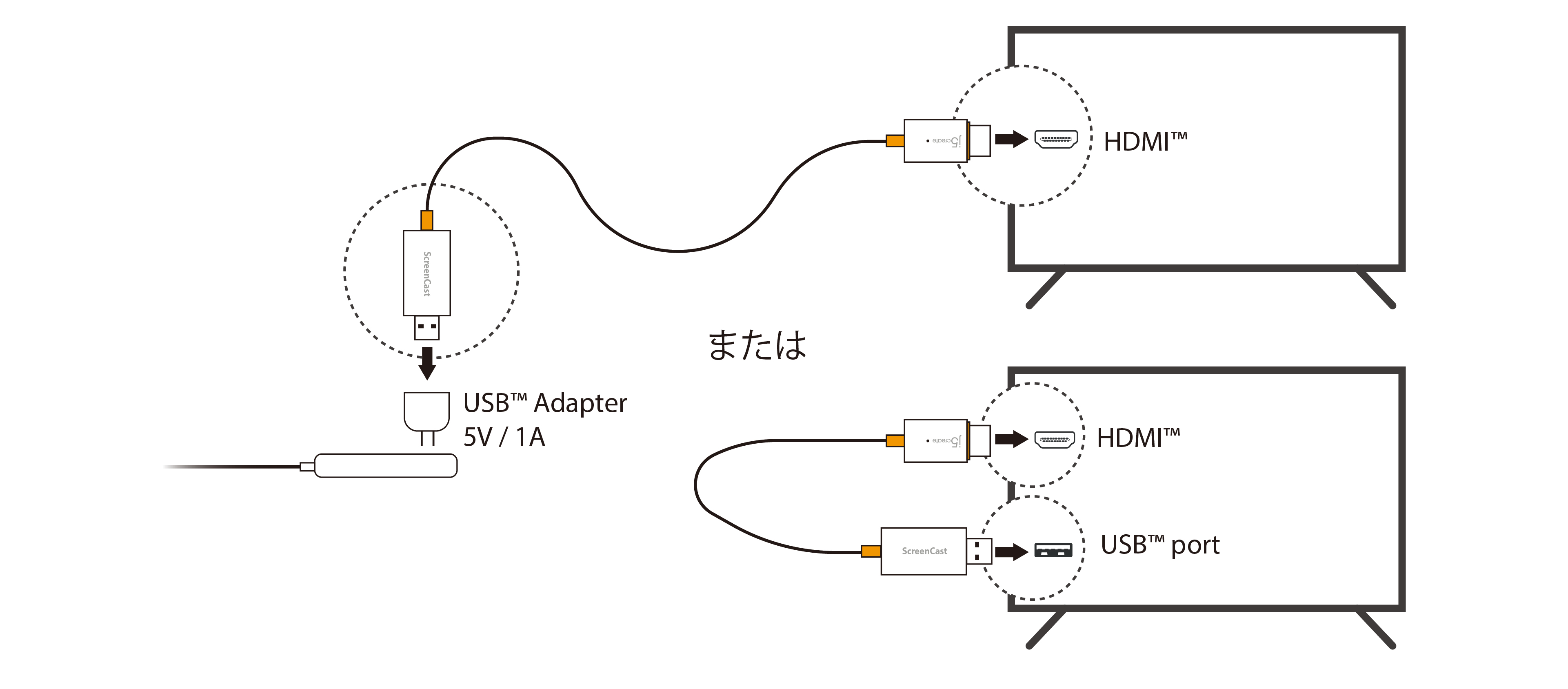端末のAirplayまたはMiracast機能を起動してから端末画面をミラーリングして大画面で見ます。
