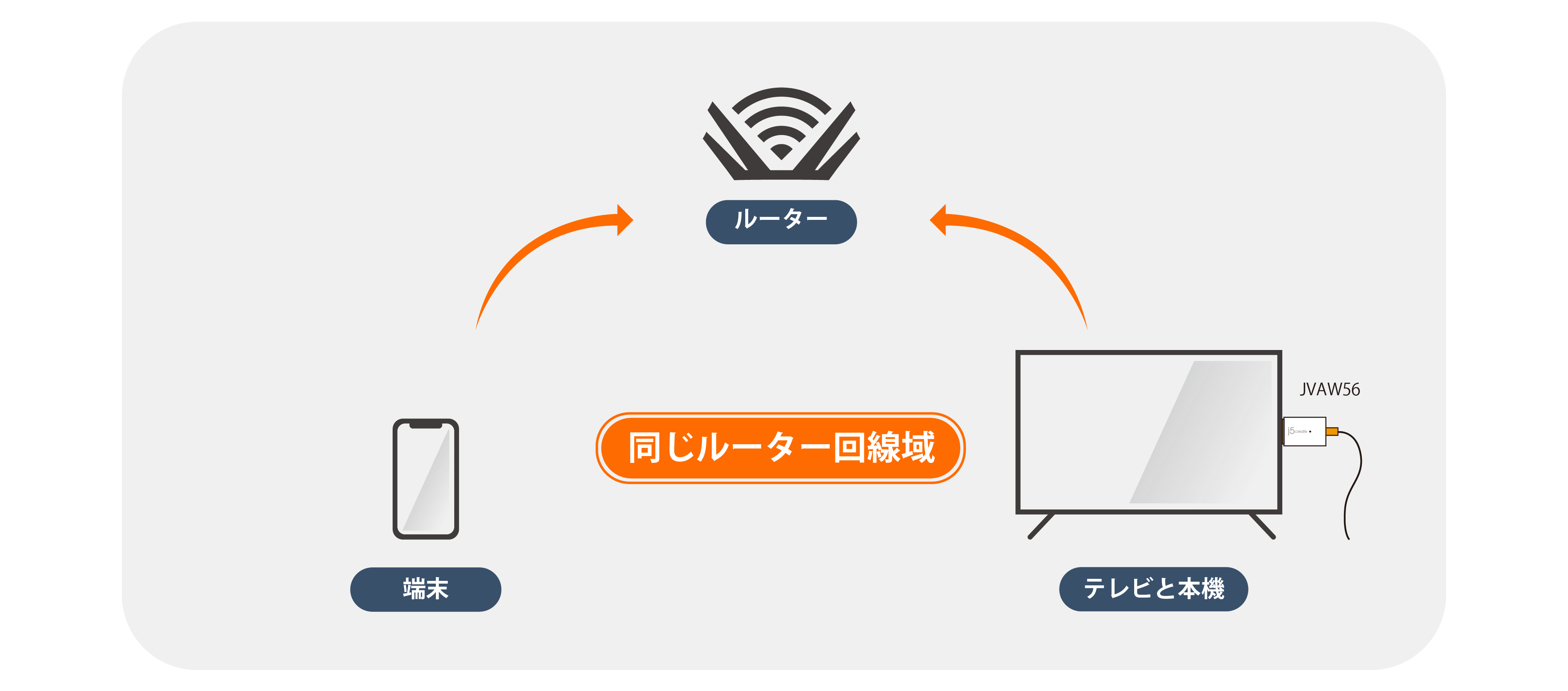 注意:iPhone, iPad, MacBookなどAirplayの端末はルーター回線を使用したい場合に本機をルーター回線セットアップする必要あります。